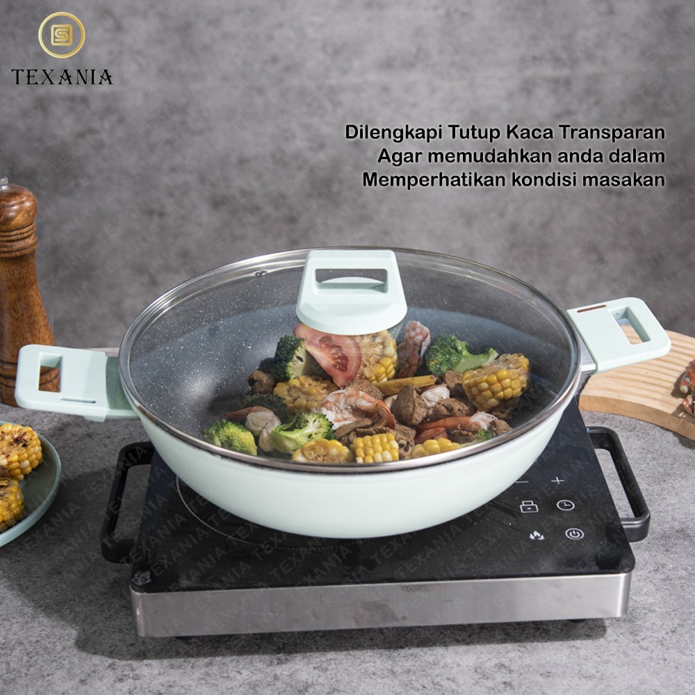 TEXANIA Wajan Kukus Anti lengket Wajan Kuping 32CM [2IN1] Wokpan + Glass Lid Panci Kukus Anti Lengket Serbaguna Multifungsi