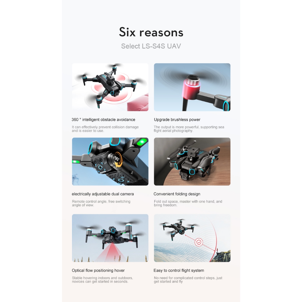 【Half-folding drone】【Drone pencahayaan yang indah】S4S drone/dual camera/three in one lens/optical flow hovering/intelligent obstacle avoidance/brushless power/beautiful lighting body