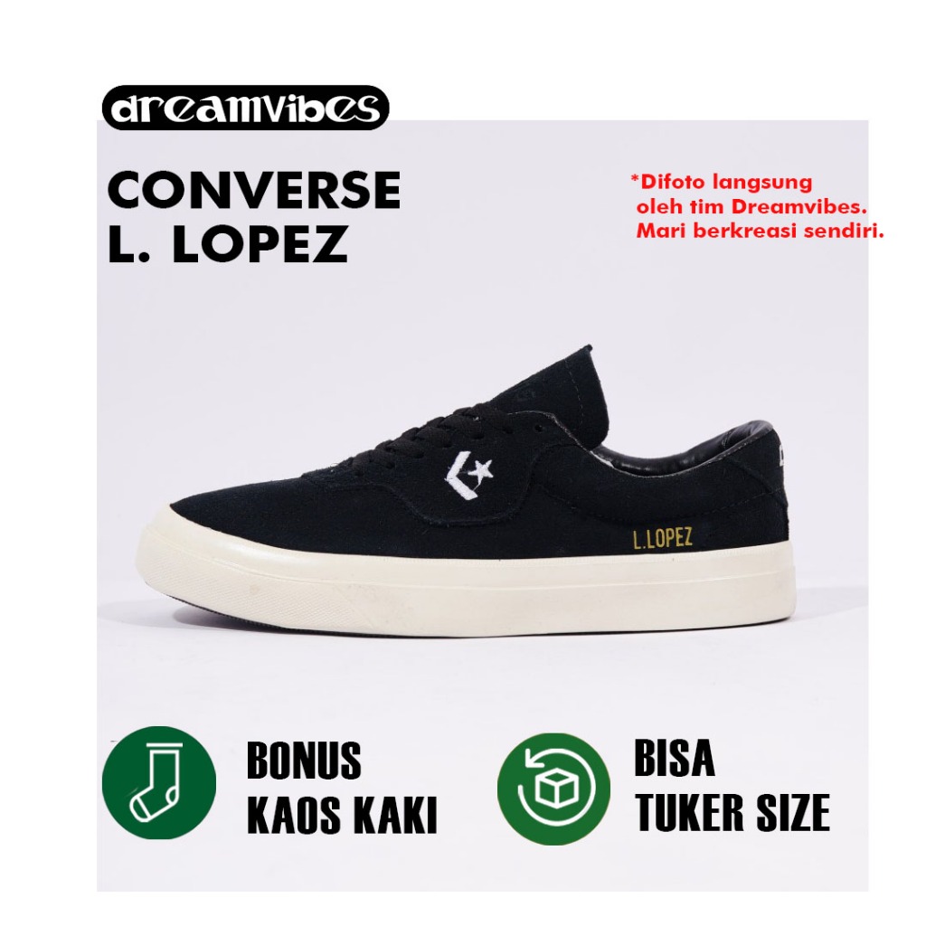 SEPATU CONVERSE SNEAKERS CONVERSE ONE STAR PLAYER OX BLACK WHITE J. LOPEZ HITAM PUTIH