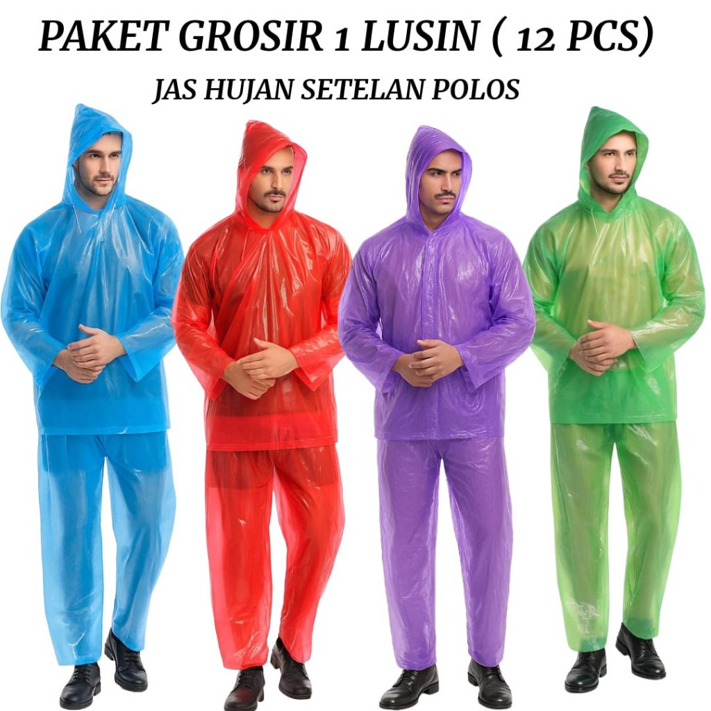 ISI 12 PCS (1 LUSIN) Jas Hujan Plastik Murah Setelan Polos Jaket Celana 4 Warna