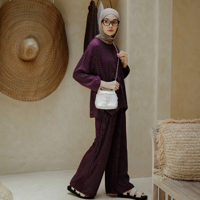 SOORE - AREYA STRIPE Series - One Set Panjang Dewasa - Setelan Wanita Kekinian BURGUNDY
