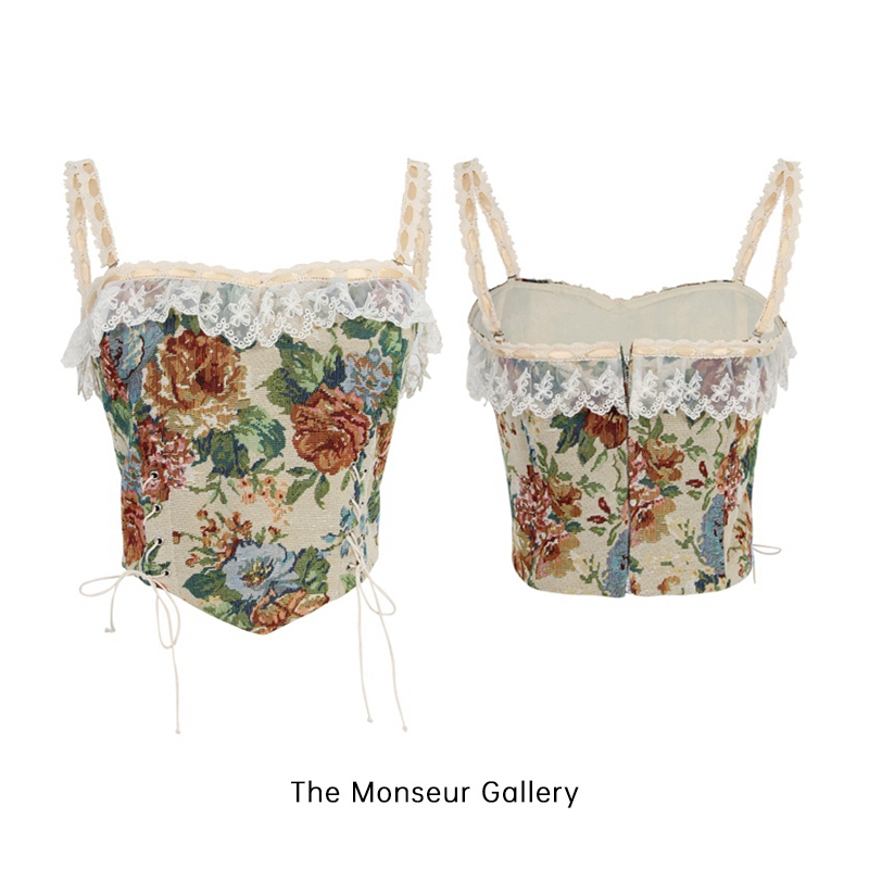 The Monseur Gallery Tank Top Crop Retro Korean Style Tangtop Lace Floral