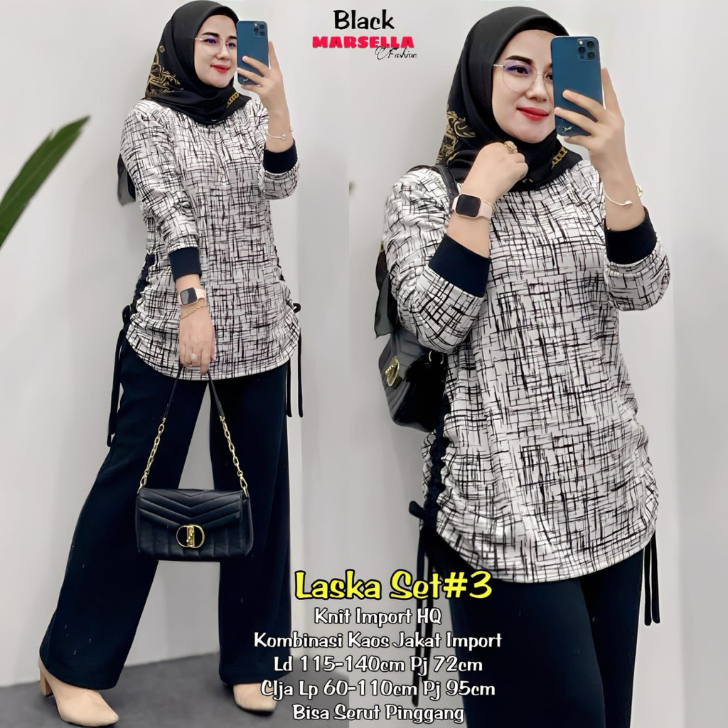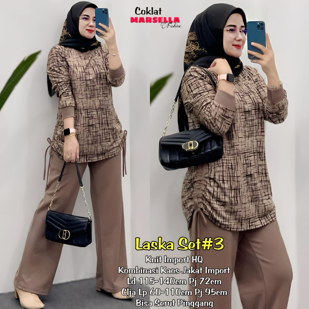 setelan kaos wanita terbaru laska #4 one set knit wanita