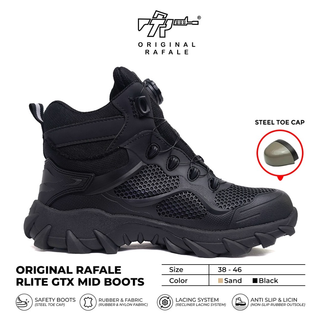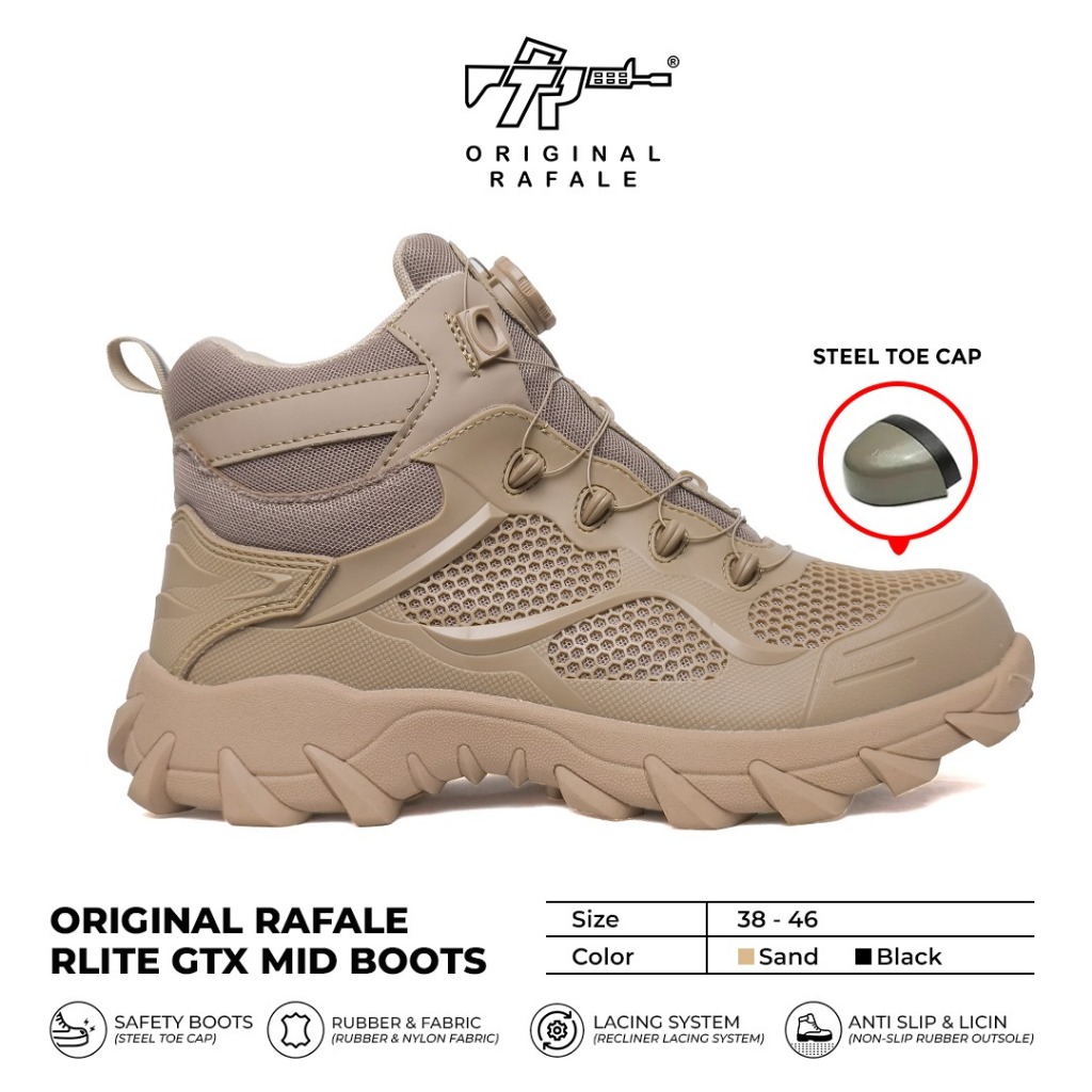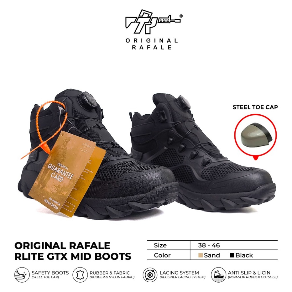 Sepatu Rafale Rlite GTX Mid Boots Safety - Sepatu PDL PDH Safety Tali Putar Hitam Sand