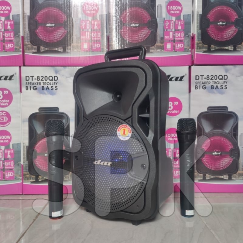 Speaker Portable DAT DT 820QD 8 inch 2 Mic Wireless