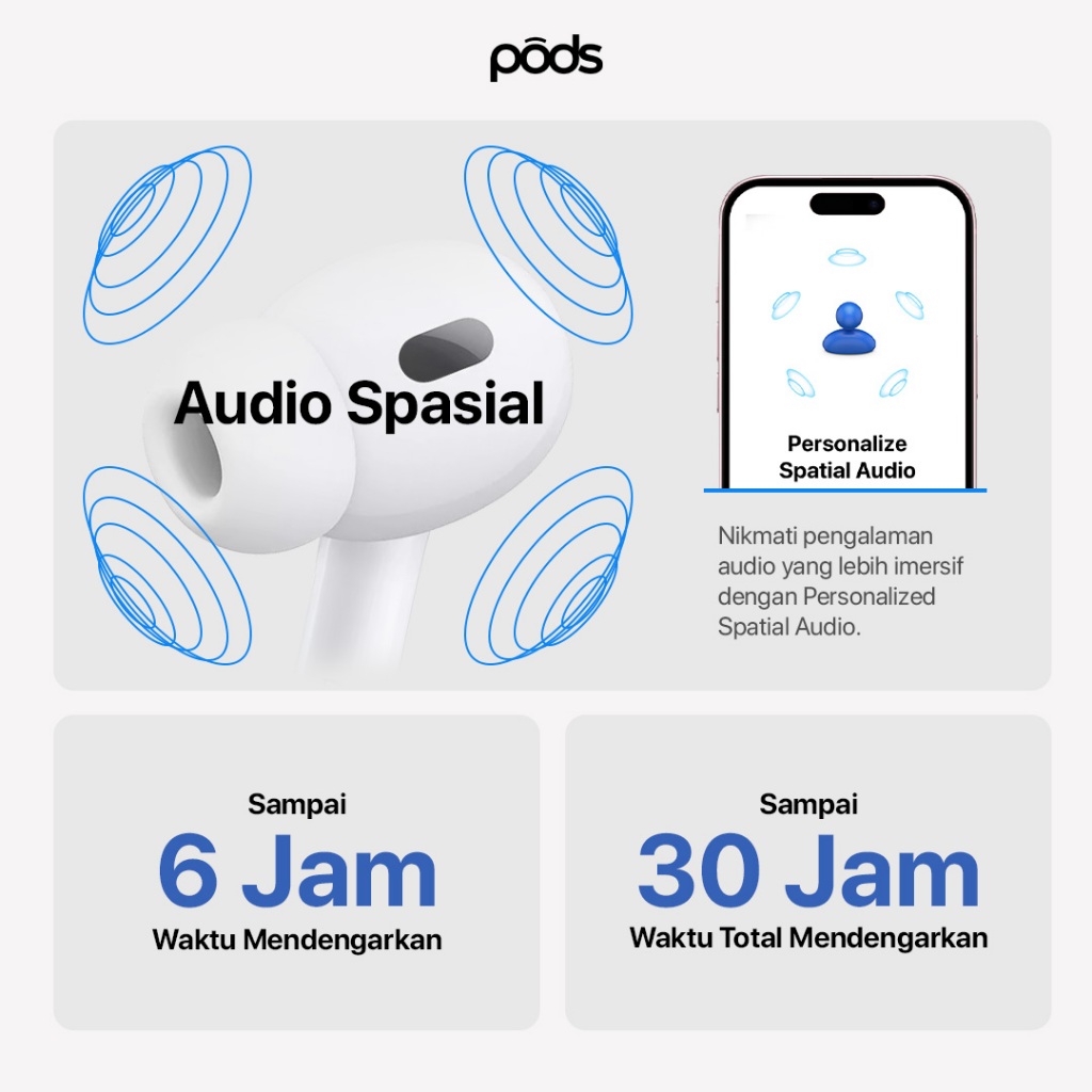 [BEST SELLER] ThePods PRIME Pro 2 Generation TWS Bluetooth – H2 Chip, Wireless Charging, IMEI Terdaftar, 9D Hifi Stereo by Pods Indonesia