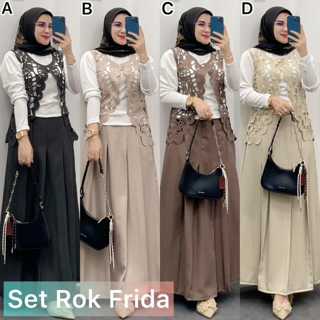 setrok frida setelan 3 in 1 , setelan rok , iner + rompi , setelan semiwol