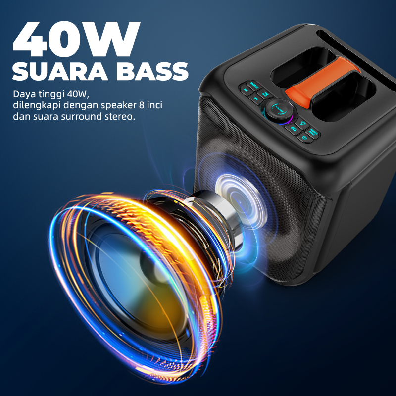 MAIKET Party Speaker 8 inch Speaker Bluetooth Karaoke 40W PRO Super Bass USB/FM/AUX 2 Mic Wireless