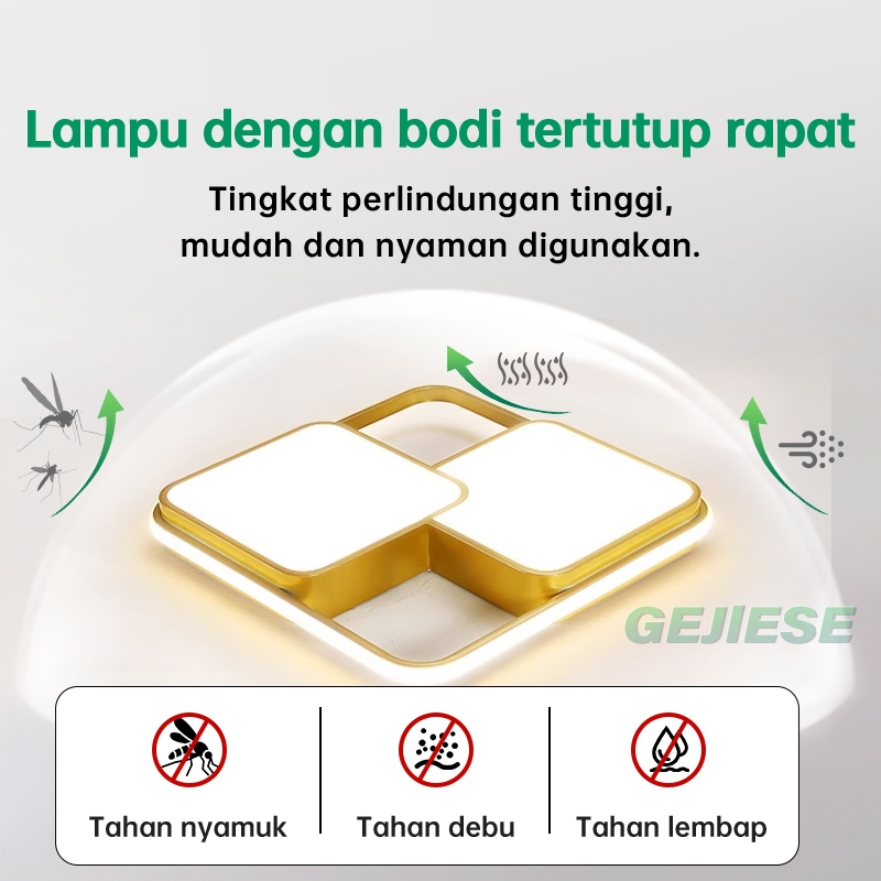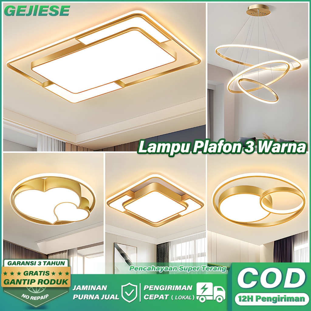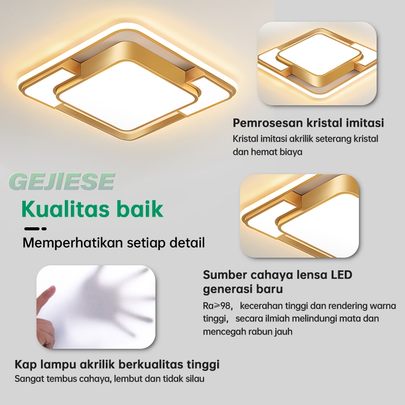 GEJIESE Lampu Plafon Kristal 48/96W 3 Warna Ruang Tamu Kamar Emas Lampu Plafon Minimalis Hias