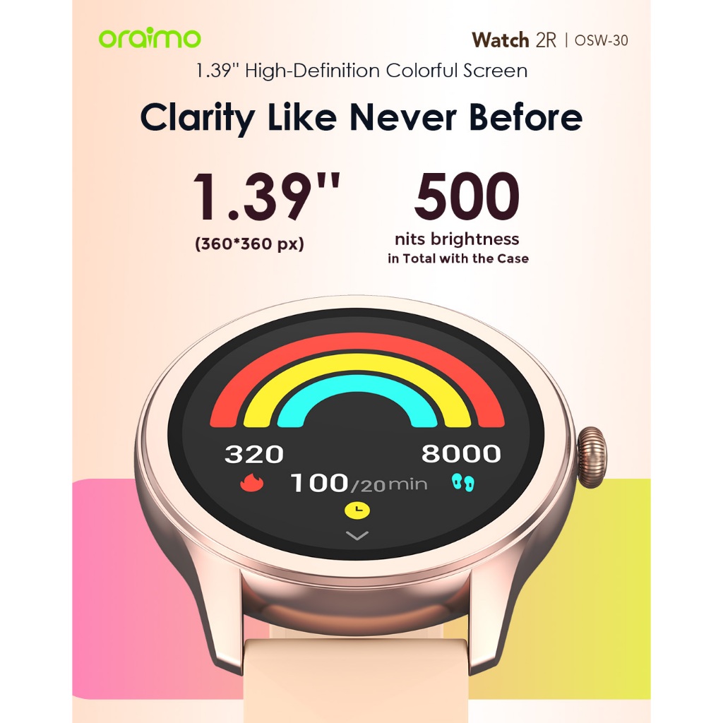 oraimo Smart Watch 2R Jam Tangan Colorful OSW-30 Olive Green 1.39" Screen 120+Sport Modes Bluetooth 5.2 Calling Fitness Tracker Long Battery IP68 Waterproof Dustproof