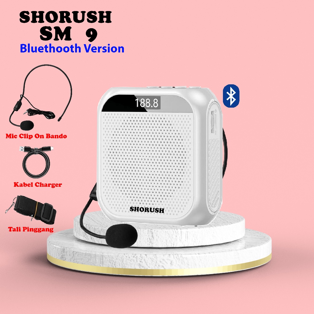 Shorush SM-9 Speaker Pinggang Portable Mini Bluethooth Dengan Microphone Mic Clip on Bando Pengeras Suara Untuk Guru Dosen Mengajar Instruktur TourGuide Presentasi Kegiatan Outdoor Seminar