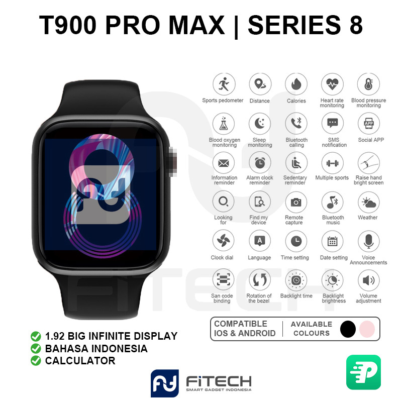 FiTech Smartwatch Jam Tangan Pintar Series 8 Bluetooth Fitness Tracker Heart Rate SPO2 Watch 8 IWO8 Garansi