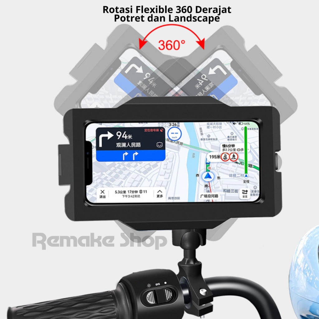 Gub Plus 17 Original Alumunium Alloy Holder Hp Motor Waterproof Full Besi Anti Getar Tahan Air Stang Spion Rotasi 360 De