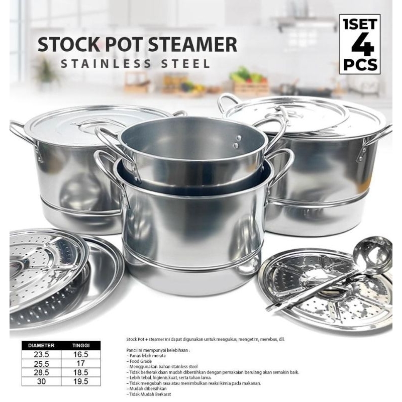 (5KG) STOCK POT PANCI TINGGI SET 4IN 1 STEAMER / STOCK POT HC PANCI SET DANDANG SARINGAN STEMER MURA
