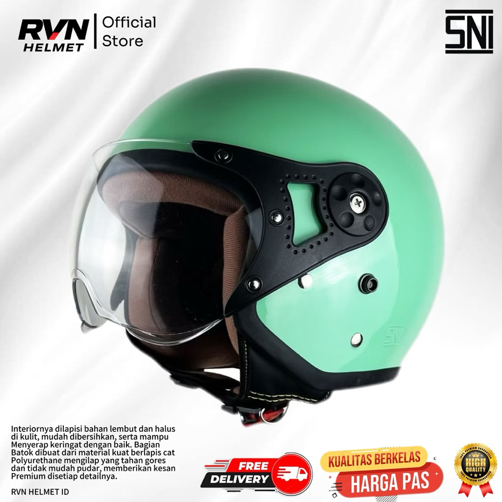 Helm Hijab Bogo Retro - Stylish Dewasa Kaca Pilot SNI Full Leher Half Face