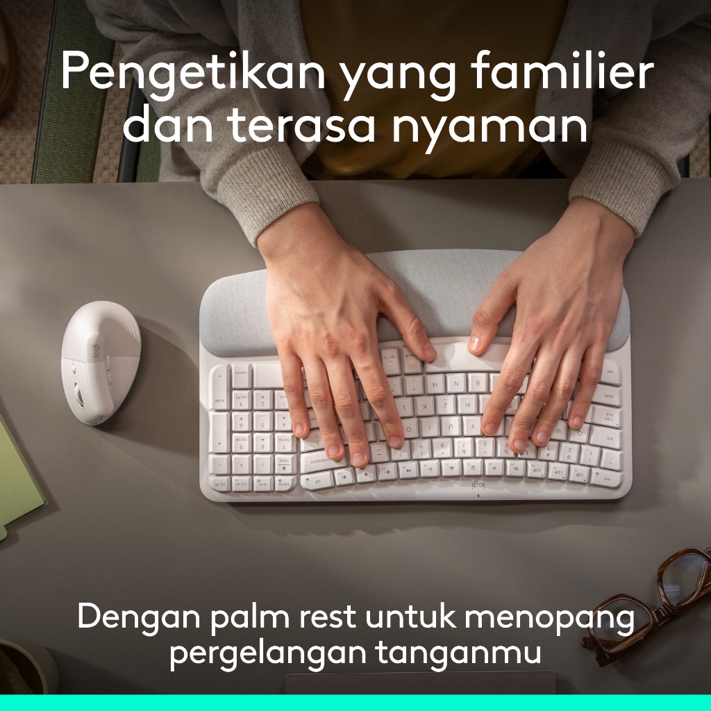 Logitech COMBO Wave Keys & Mouse Vertikal Lift Logitech - Keyboard dan Mouse Nirkabel Ergonomis - dengan Penyangga Telapak Tangan Empuk, Easy-Switch, Bluetooth, untuk Multi-OS, Windows/Mac