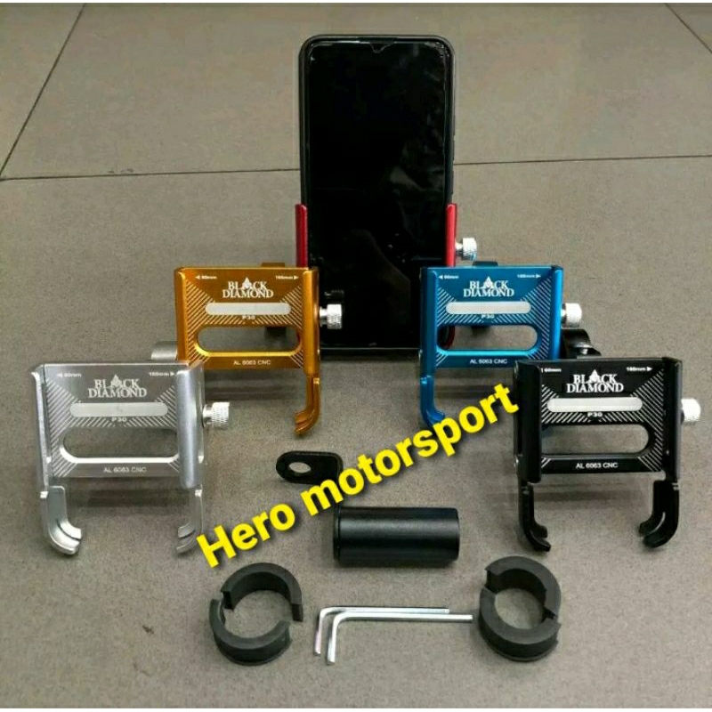 Holder Hp Handphone P 30 Full Cnc Buat Stang Motor Universal Blackdiamond Best Quality
