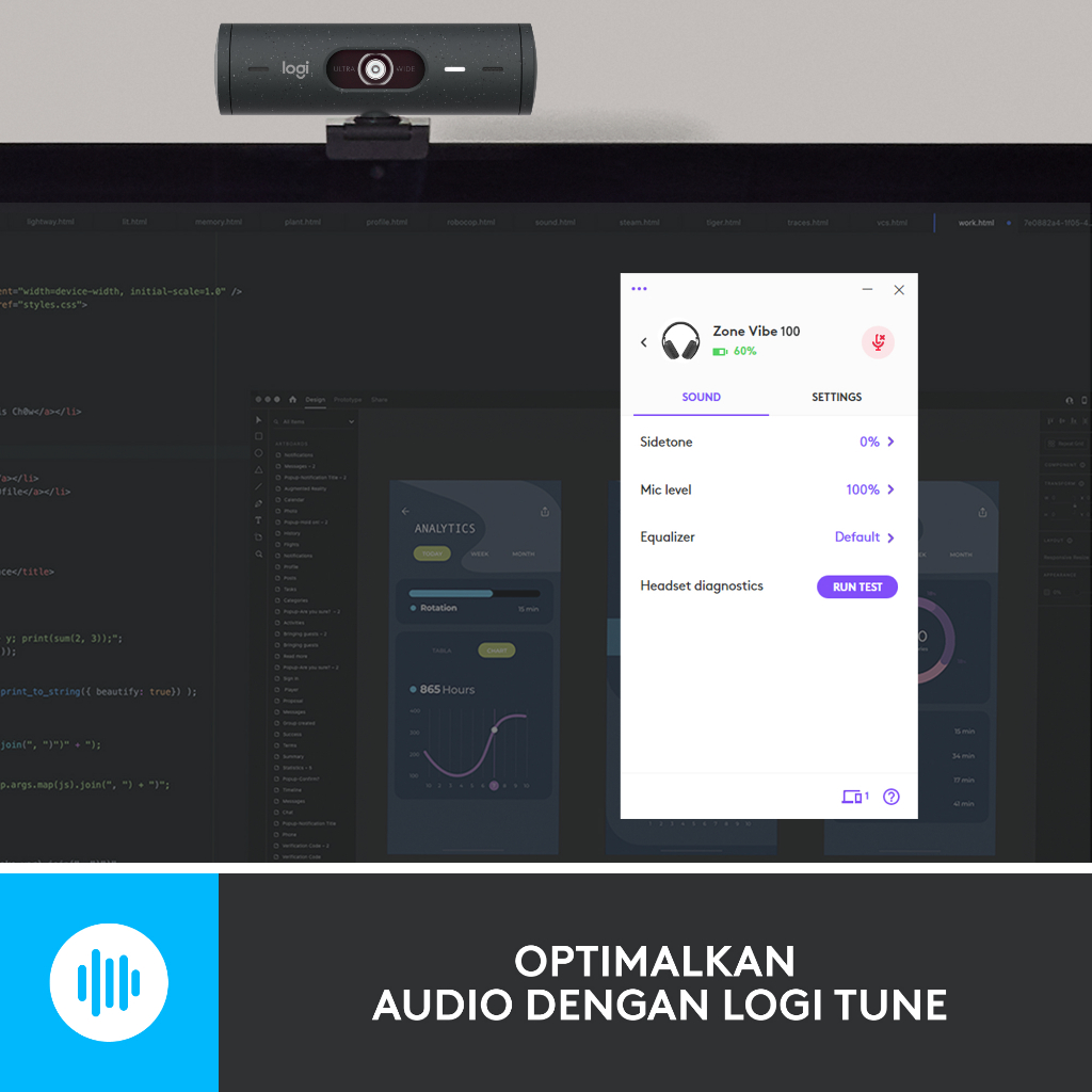 [BUNDLING] Logitech Brio 500 webcam Full HD 1080P x Logitech Zone Vibe 100 Wireless Headphone