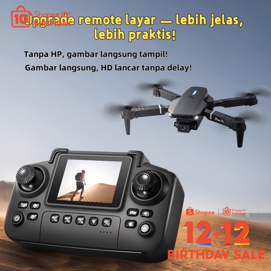 Drone 4K Dual Kamera Lipat Layar Remote Tanpa HP WiFi FPV Auto Hover Anti Tabrak Cocok untuk Pemula