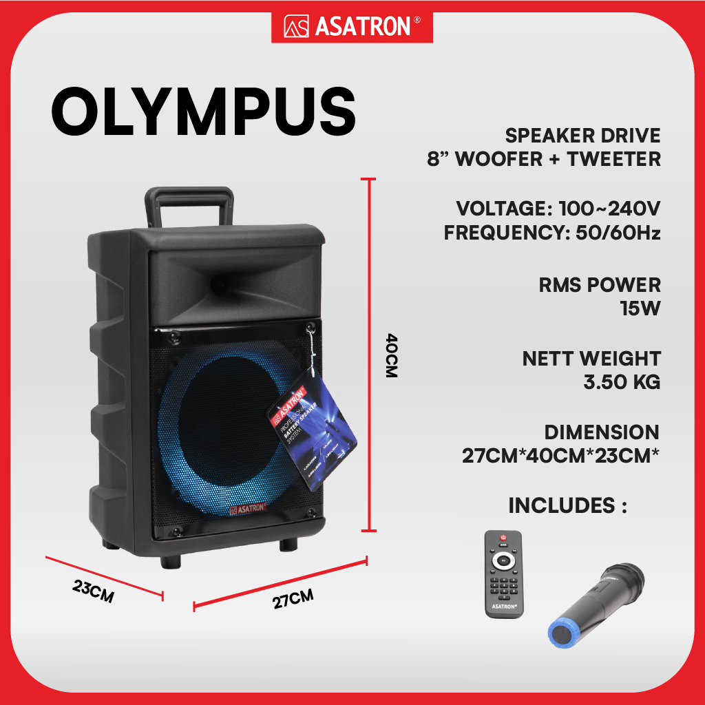 Asatron Olympus 8 Inch Bluetooth Party Speaker with Wireless Mic