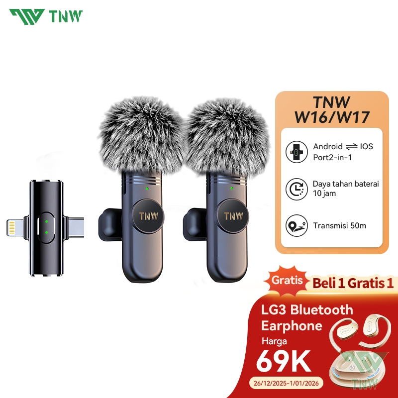 TNW W16 /W17 Wireless Microphone 2 In 1 Clip On Mic Portable Microphone Mikrofon Lavalier HP Untuk Live Streaming TikTok YouTube