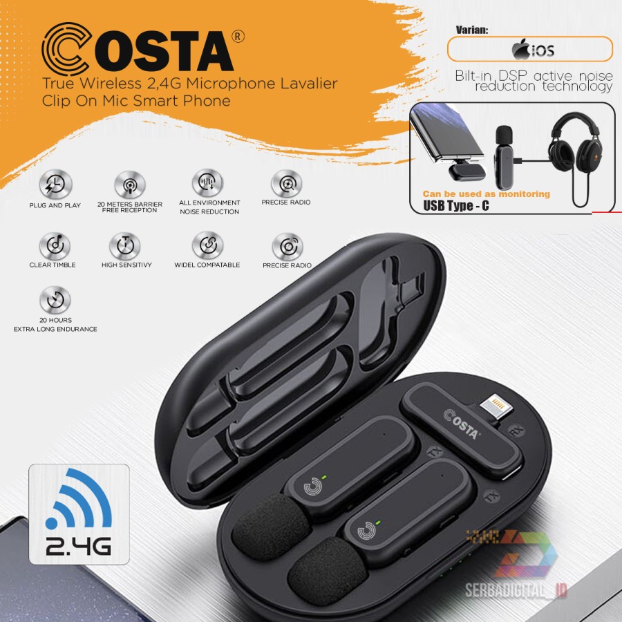 COSTA True Dual TX Wireless Mic Super Lavalier Clip On Smart Phone