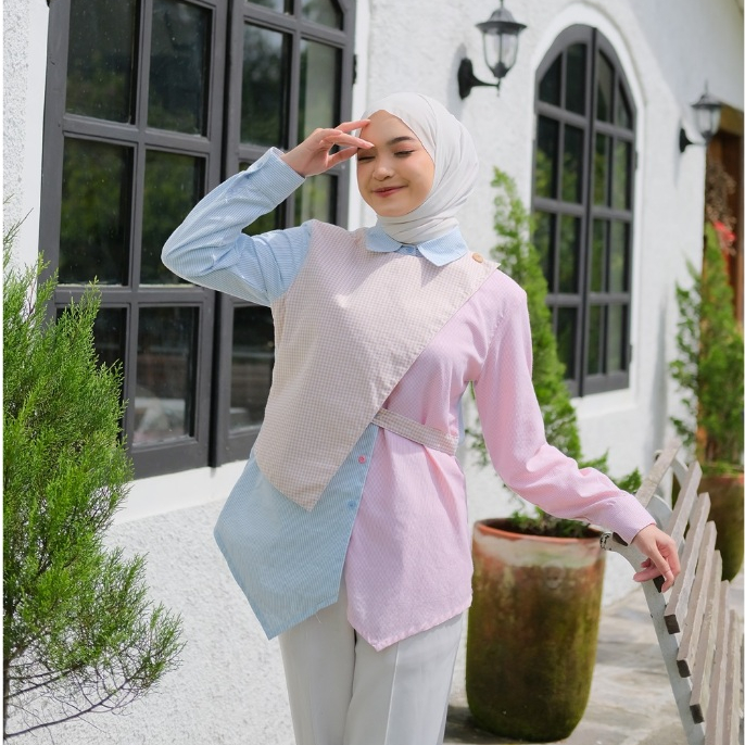 Tunique | Keiji Blouse - Lini Series 5.0 | Atasan Blouse Wanita Muslim Kekinian Unik Garis-Garis