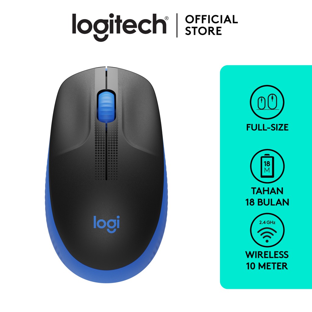 Logitech M190 Mouse Wireless Full Size untuk Windows, Mac, Chrome OS & Linux - Blue