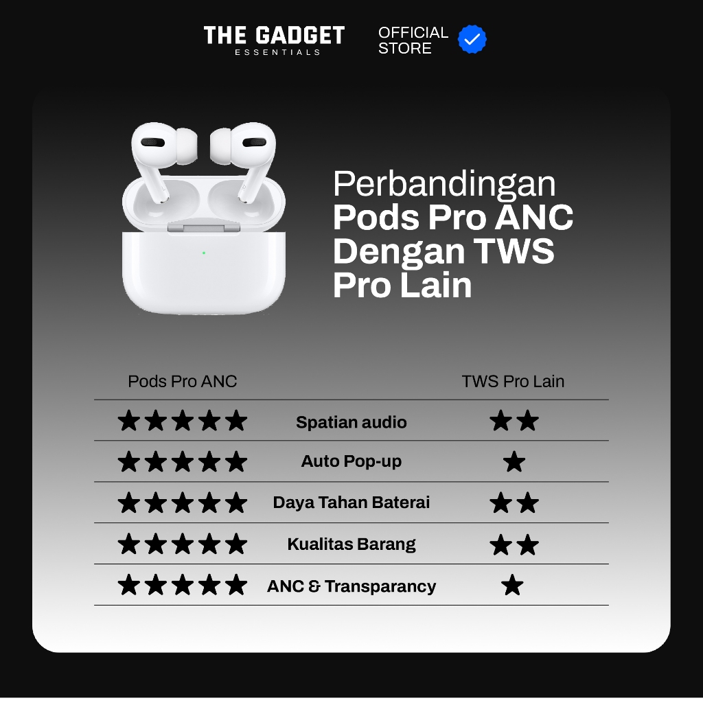 [BEST SELLER] ThePods Pro ANC 100 PERSEN – TWS Active Noise Cancelation, H1 Chip, Wireless Charging, Free Case, Spasial Audio By The Gadget Essentials