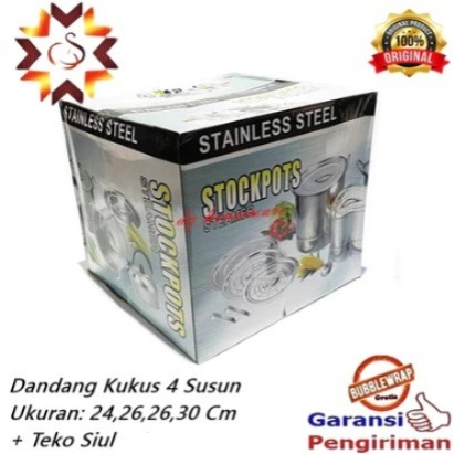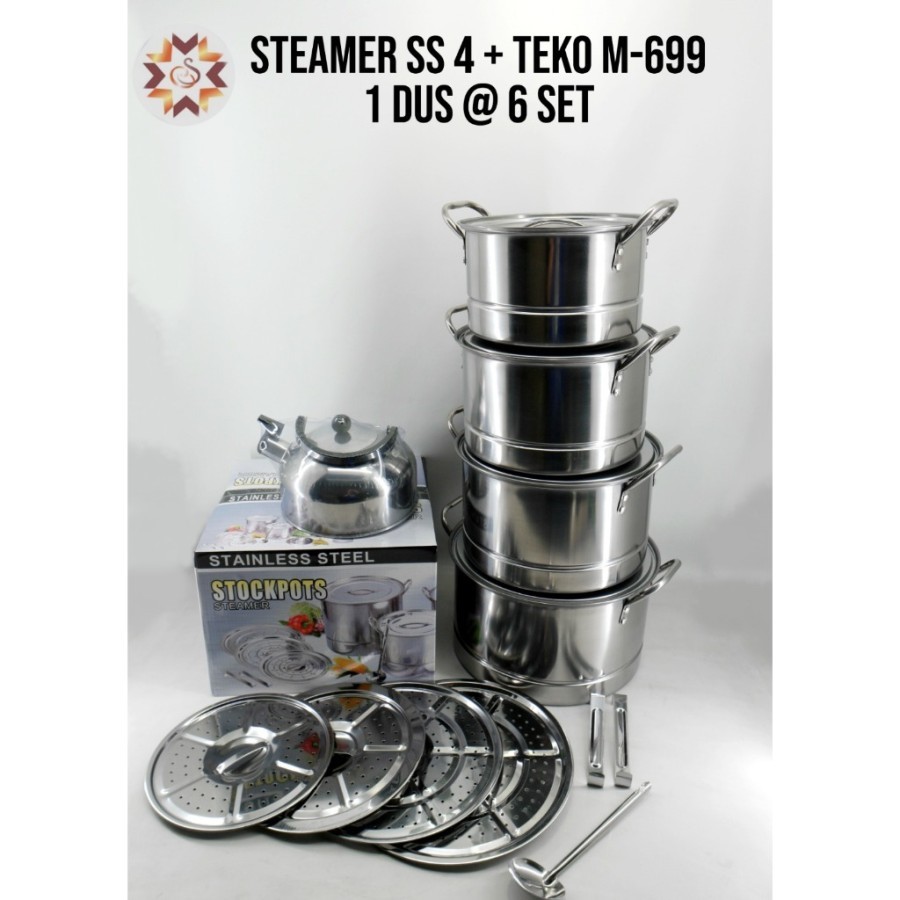 Panci Steamer Dandang Kukus Set Stockpot Steamer 4 Susun Panci Kukus 24Cm-30Cm Dengan Teko Siul Stainless