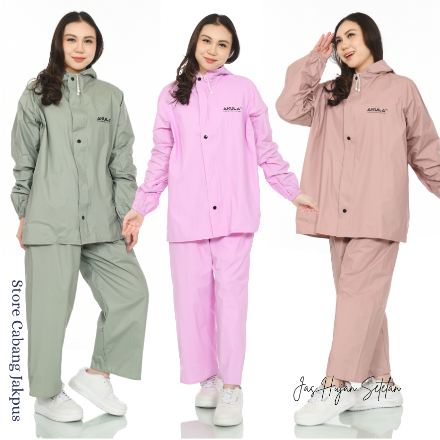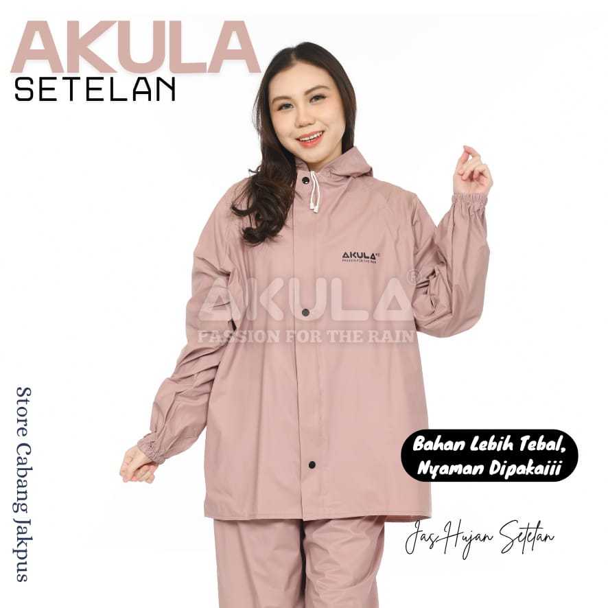 Jas Hujan AKULA Warna Dusty Pink Setelan Pria dan Wanita Bahan Tebal Kuat dan Anti Rembes Kualitas Terbaik