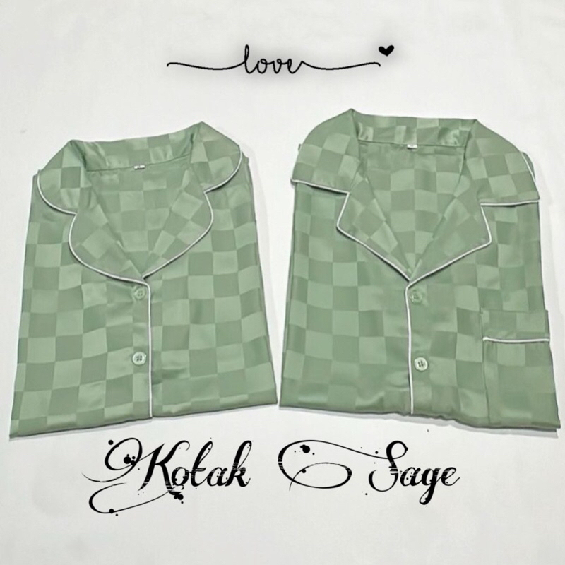 Paket piyama CP couple salur garis kotak satin sutra wanita dan pria lengan pendek celana panjang