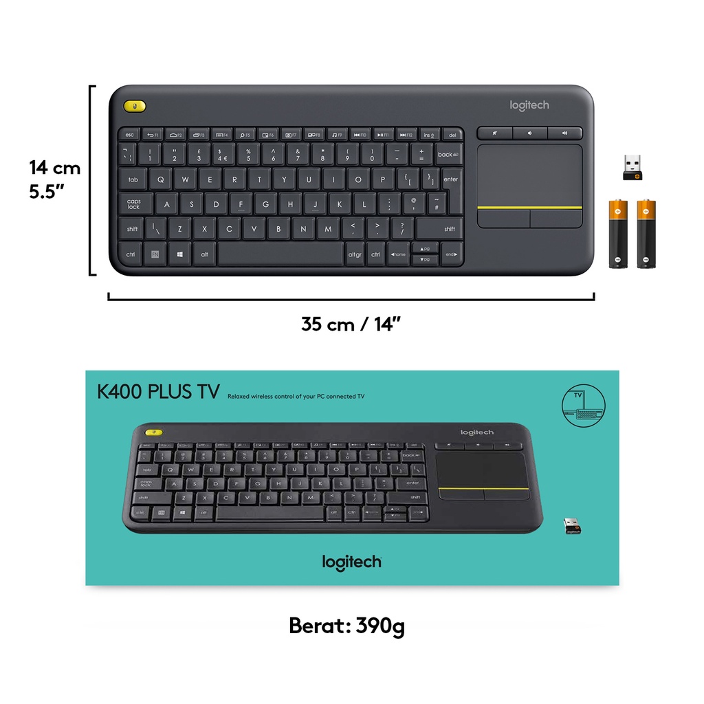 Logitech K400 Plus Keyboard Wireless dengan Touchpad untuk PC & SmartTV - Black