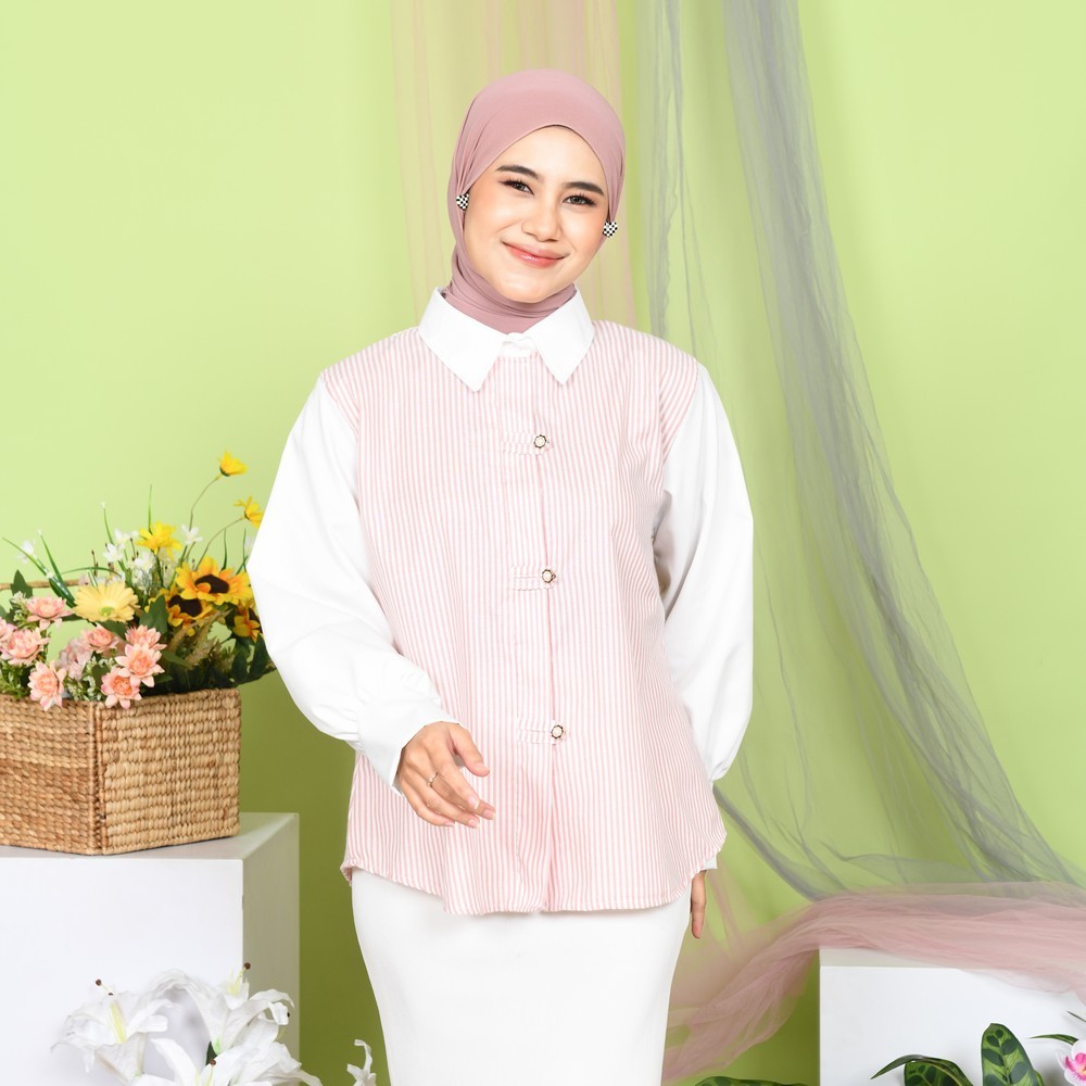 Mybamus x Syarifahkhairatunnisa Sweetiepie Blouse Kemeja Kombinasi Wanita Lengan Panjang Kekinian