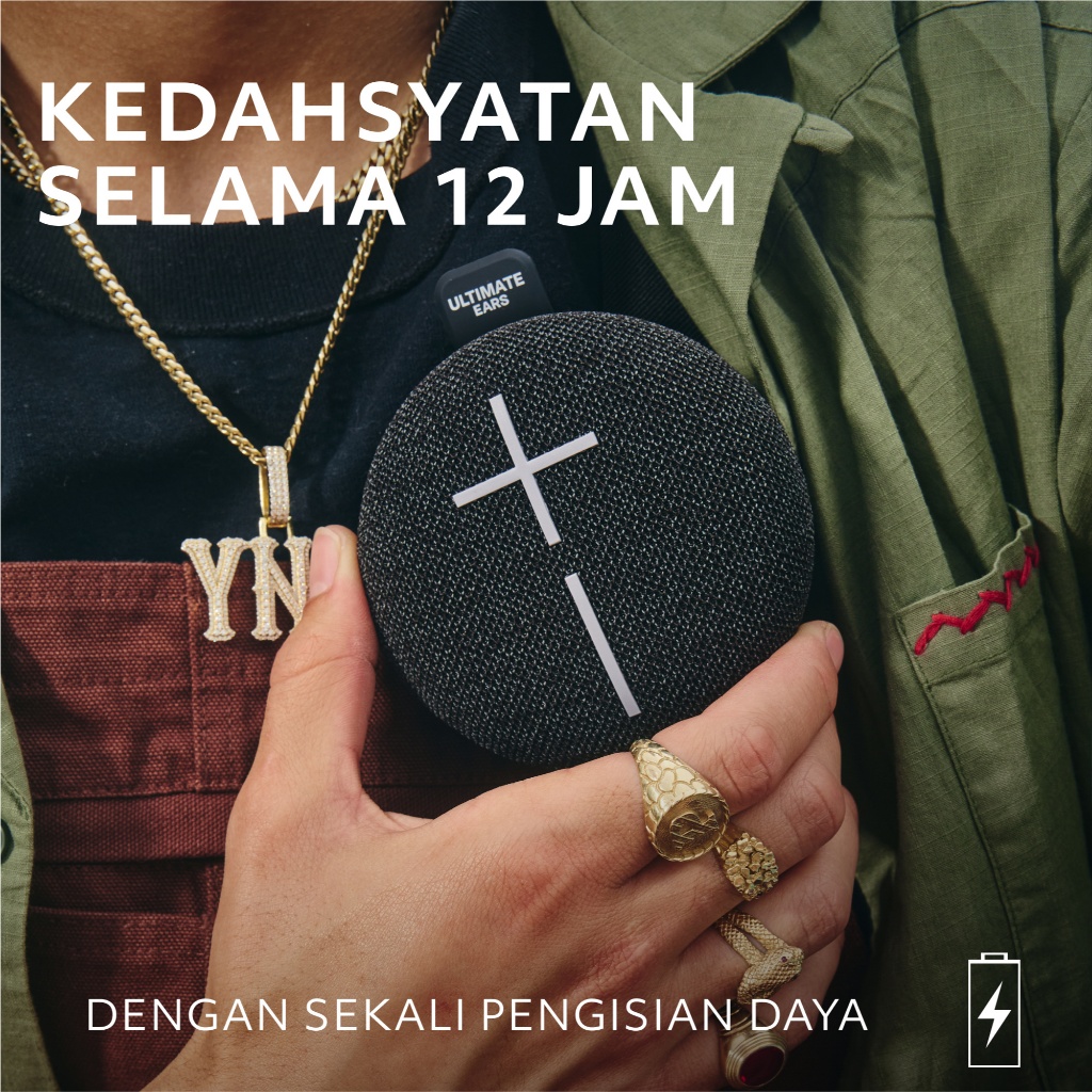 Logitech Speaker Bluetooth Tahan Air Ultra Portabel ULTIMATE EARS MINIROLL, Big Bass, Tahan Debu IP67, Jangkauan 131 kaki (40 m)