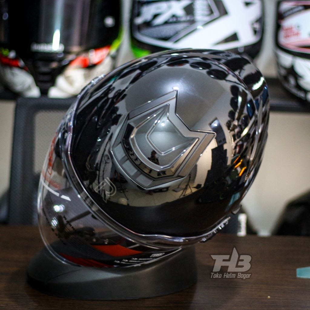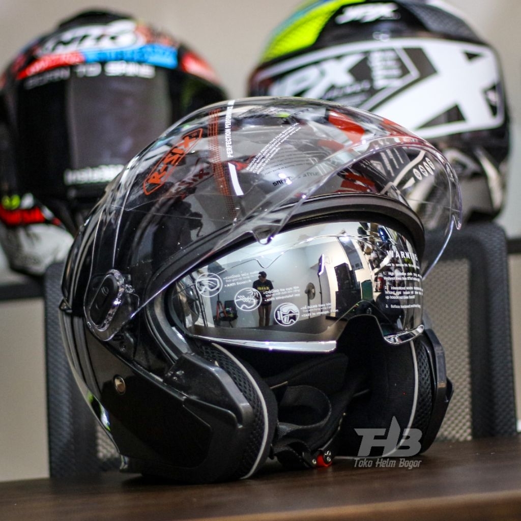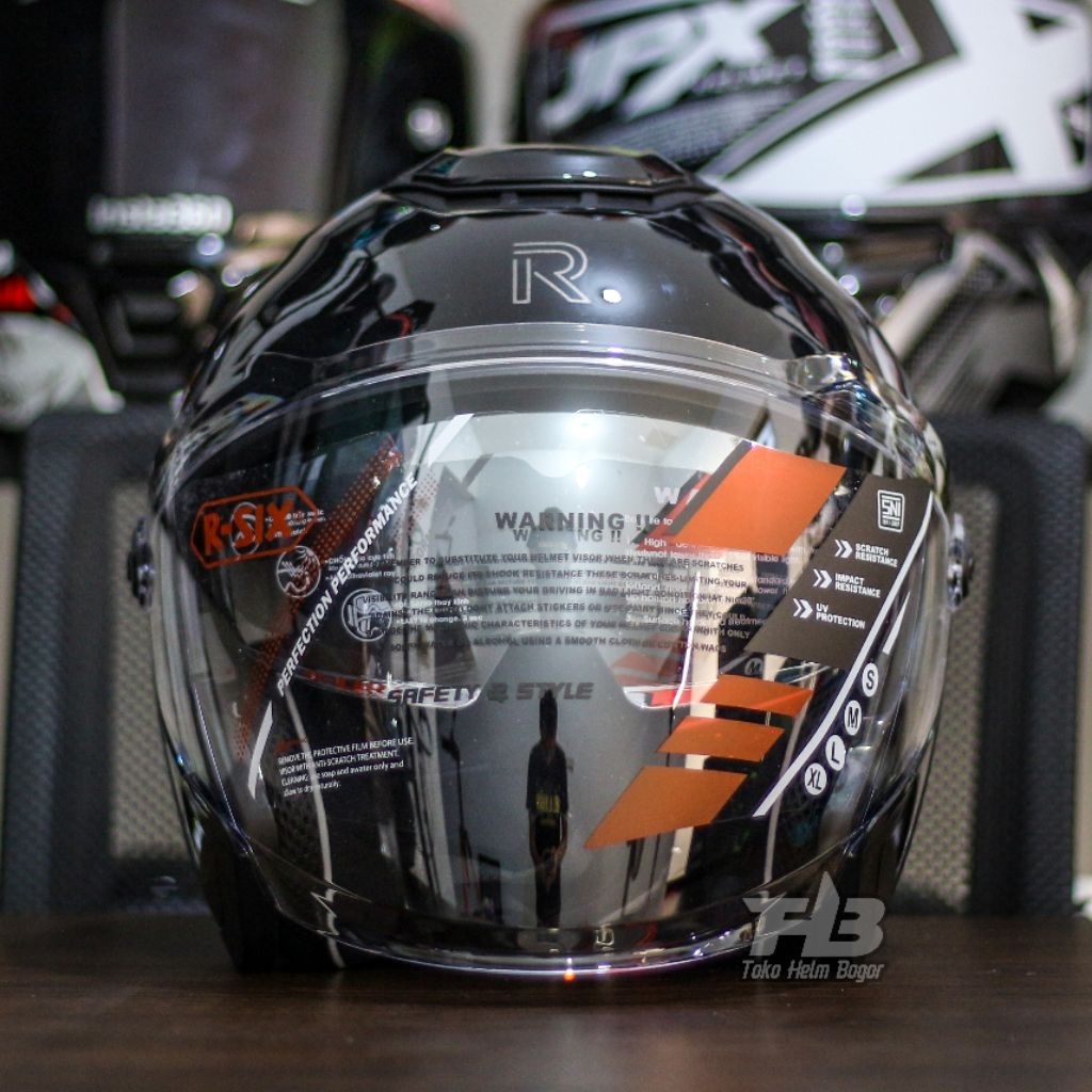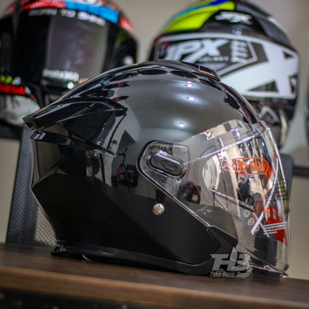 HELM RSIX REVOLT X | SOLID BLACK GLOSS | HELM HALF FACE DOUBLE VISOR HELM SNI PRIA WANITA