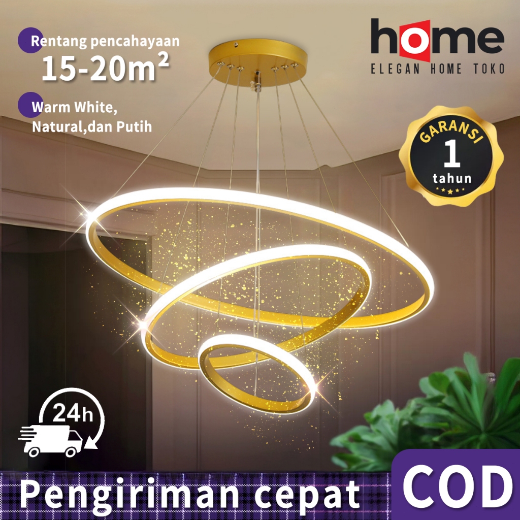 Lampu Gantung Minimalis 72w LED 3 Ring Modern Ruang Tamu Lampu Gantung 3 Warna Lampu Gantung Ruang Tamu