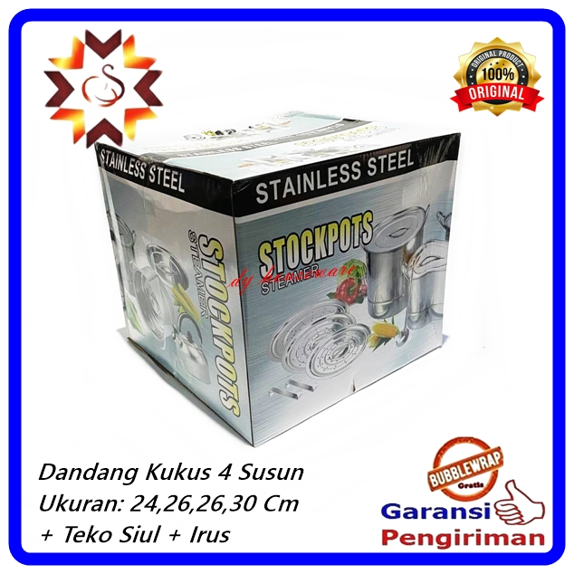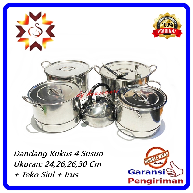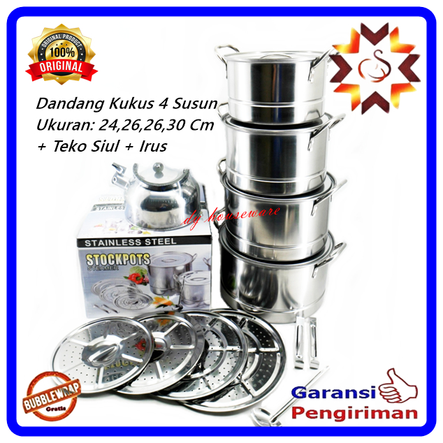 Panci Steamer Dandang Kukus Set Stockpot Steamer 4 Susun Panci Kukus 24Cm-30Cm Dengan Teko Siul Stainless