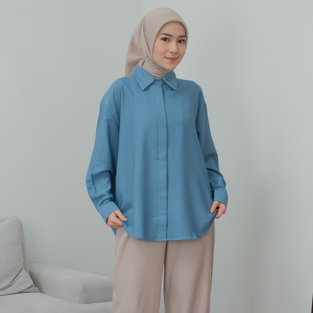 Shabaofficial Davika Top Atasan Kemeja Oversize Wanita Muslim Viral Ld120