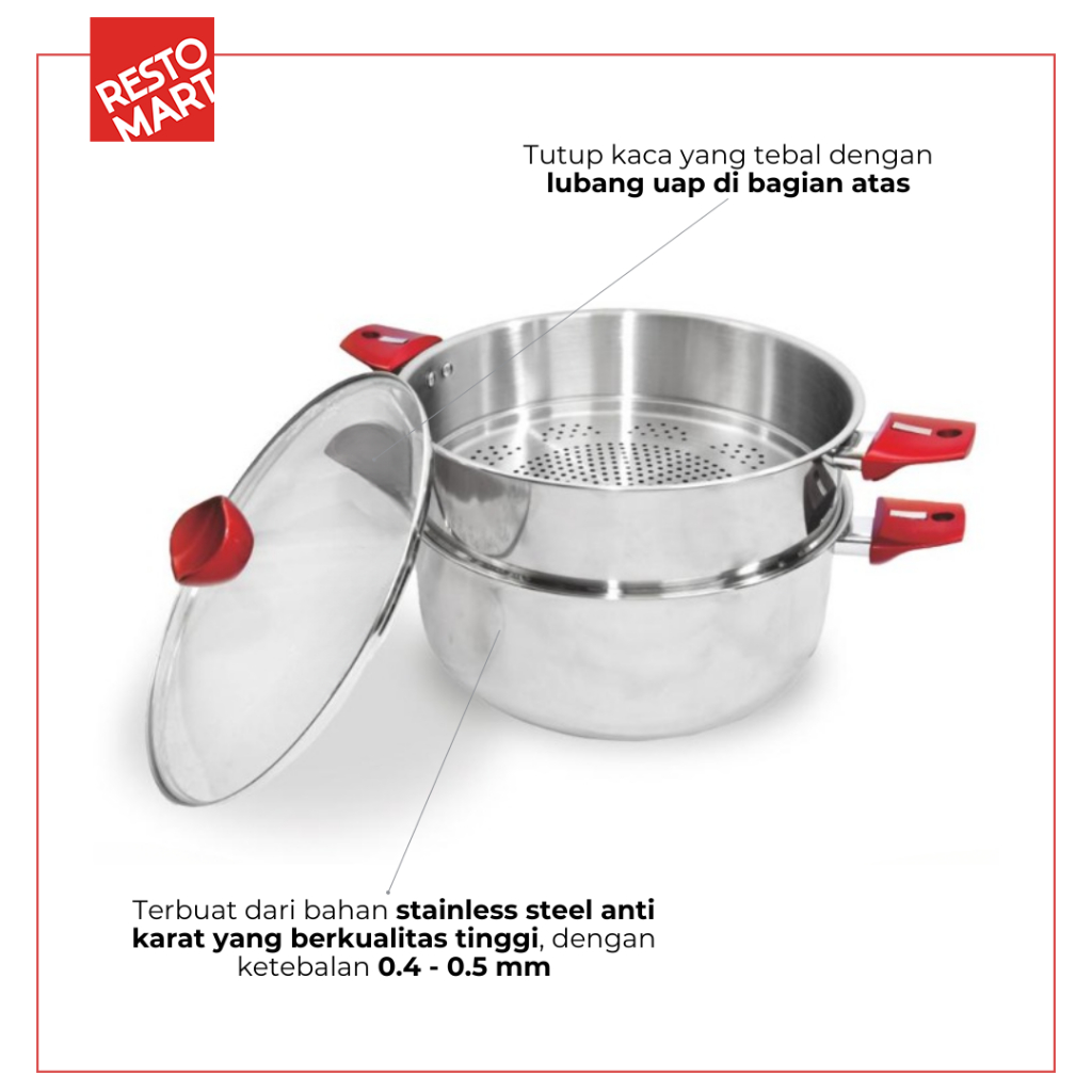 Panci Kukus Dua Susun / Super Steamer Multifungsi 32 cm SUPRA Stainless Steel (1012135)