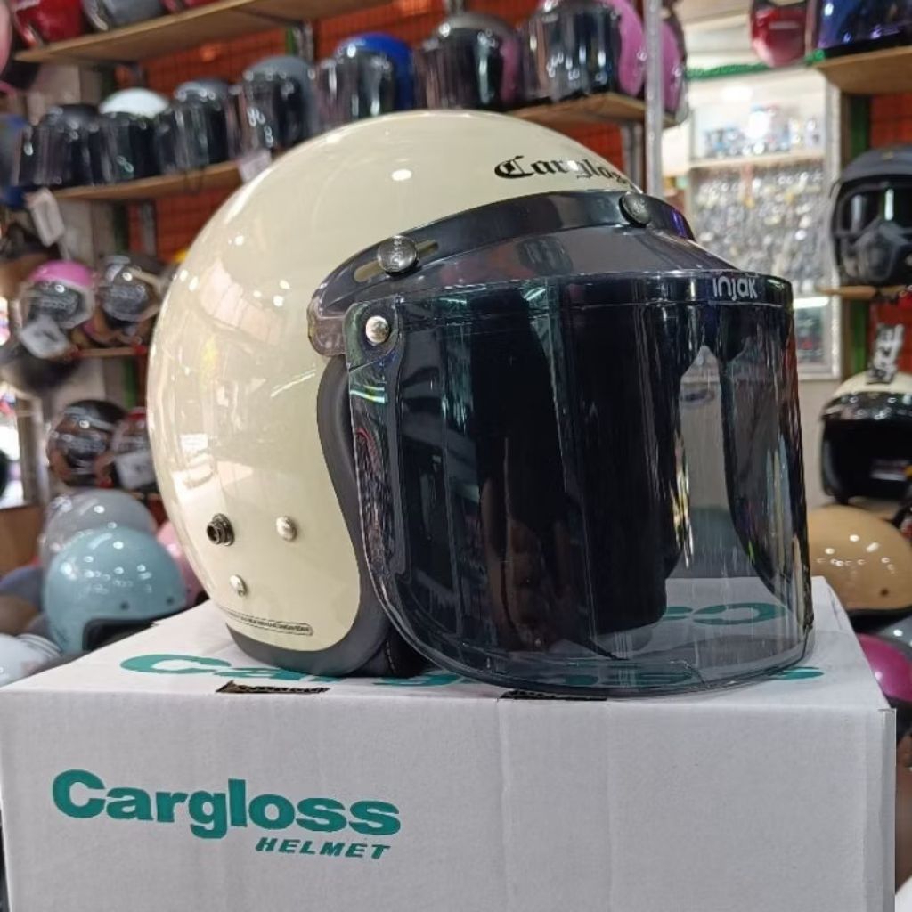 HELM CARGLOSS PREMIUM + KACA INJAK FLAT (DATAR)