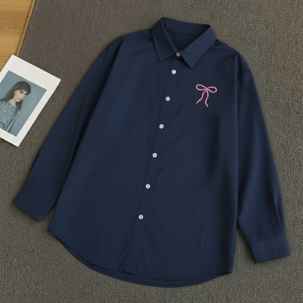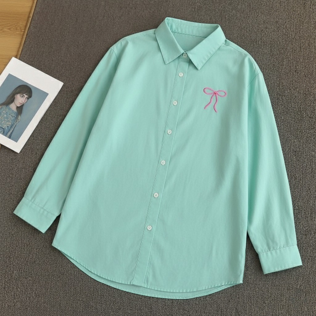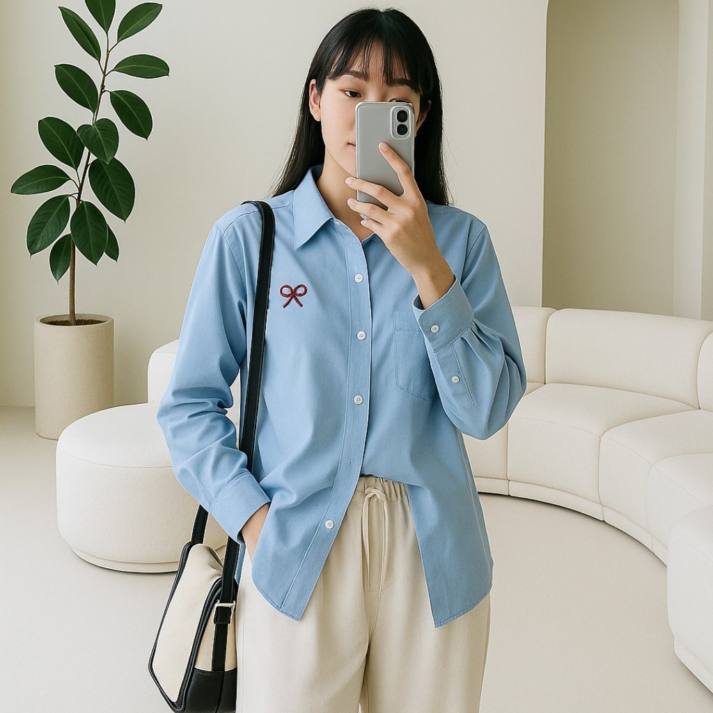Vallina Outfit - Plain Ribbon Shirt Atasan Wanita Muslim Remaja Lengan Panjang Matt Linen Rami