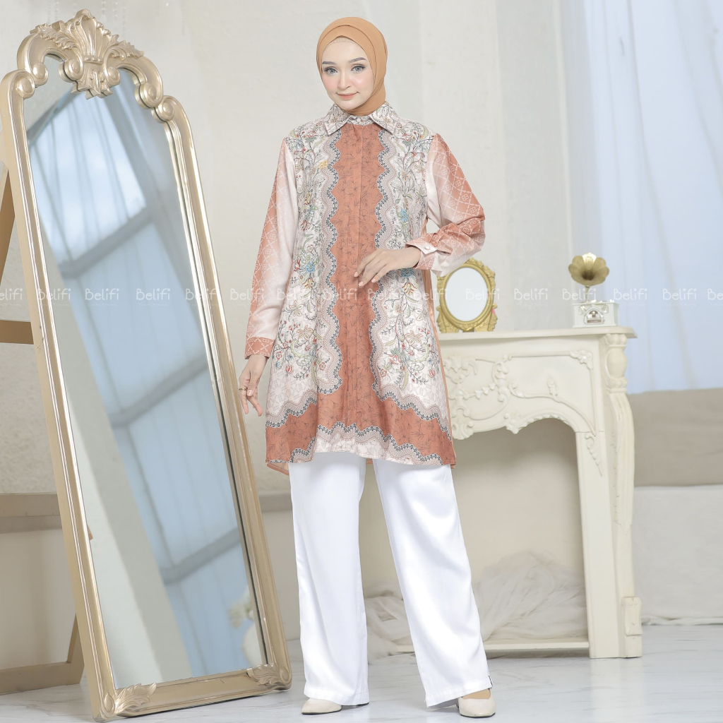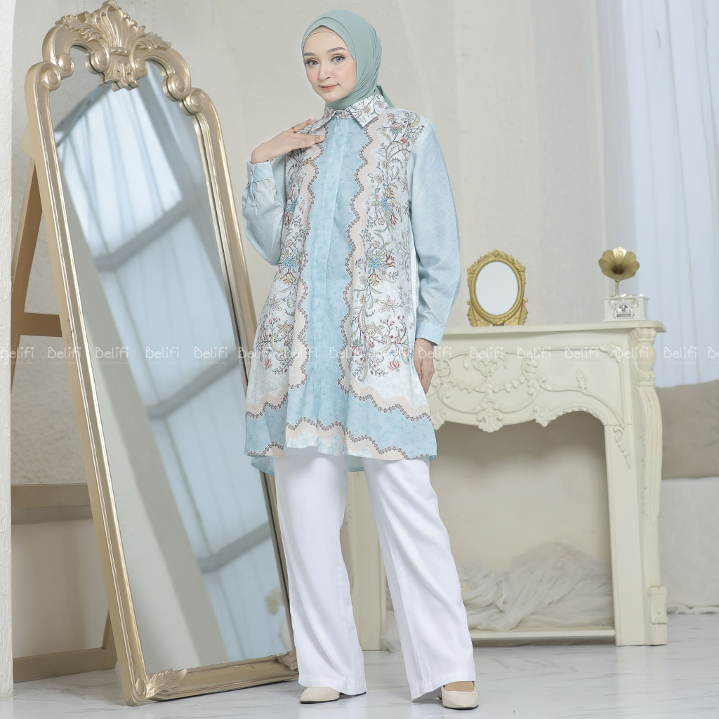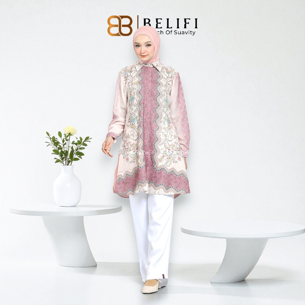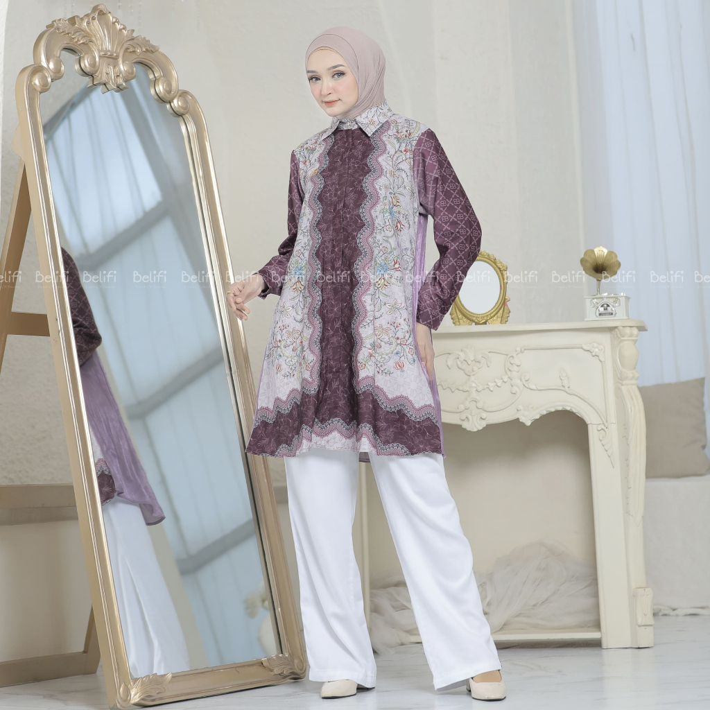 Belifi | Marissa Dual-Tex Tunic Kemeja Tunik Wanita Mewah Desain Unik Premium