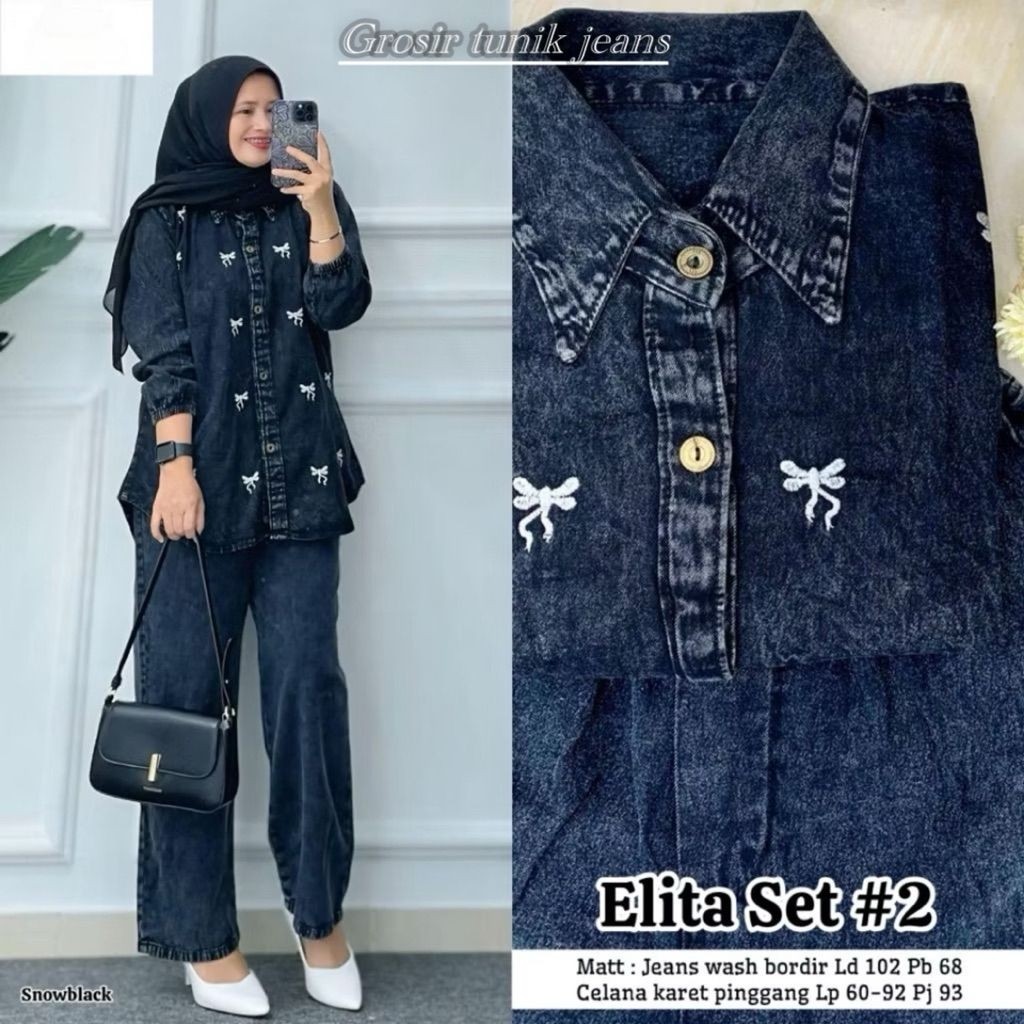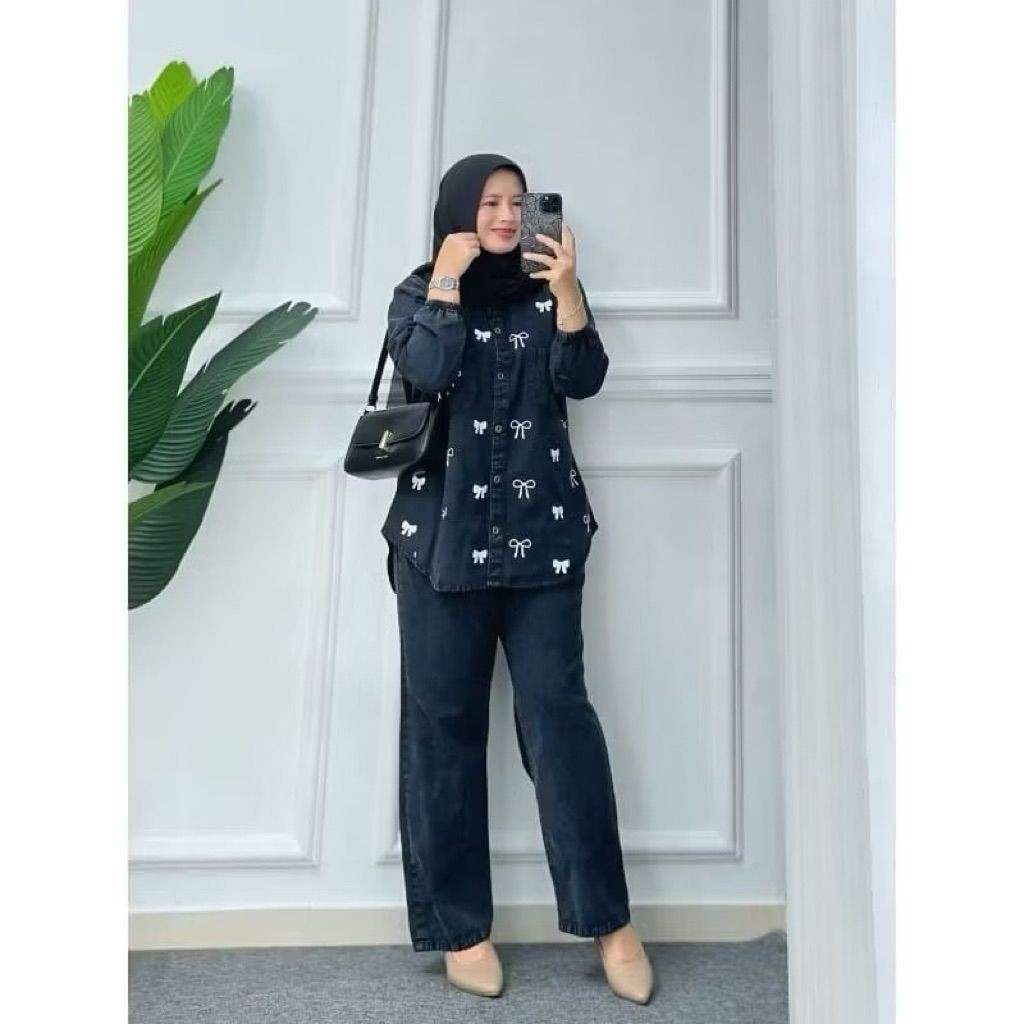Setelan Kemeja Bordir Jumbo / Baju Atasan Setelan Wanita Terbaru / Setelan Jeans Lebaran