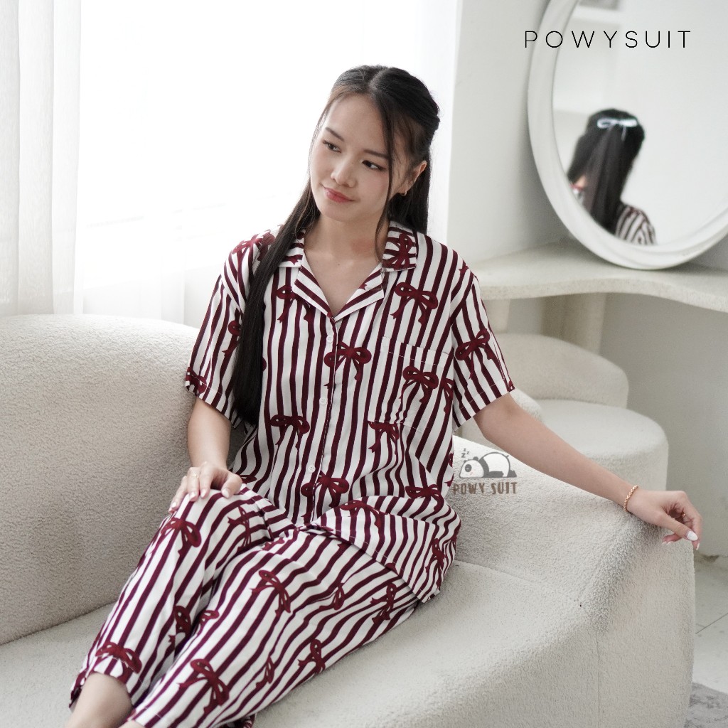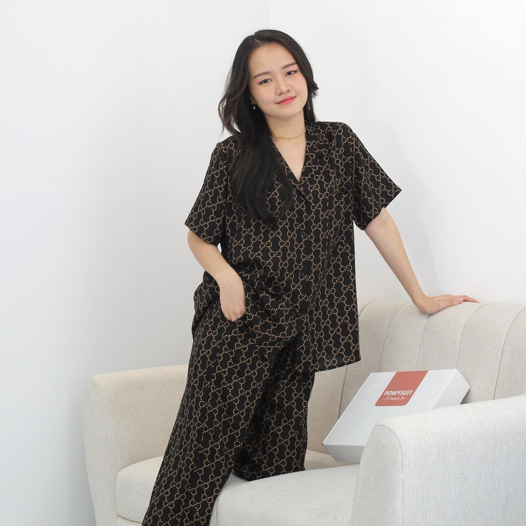 Powysuit Piyama Rayon Wanita Motif Lengan Pendek dan Setelan Celana Panjang - Kualitas Tinggi Part 2