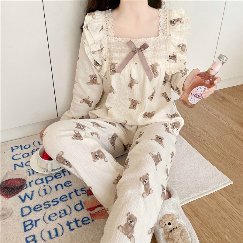 UNINICE Motif ber lucu, set piyama wanita dua potong yang nyaman dengan renda