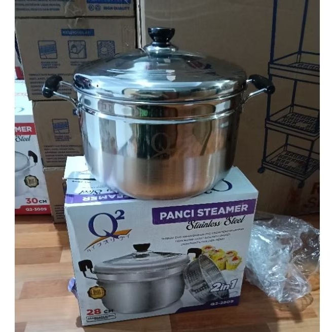 Panci Q2 Kukus/ Dandang/ Steamer Stainless Steel Tebal Premium 28 cm
