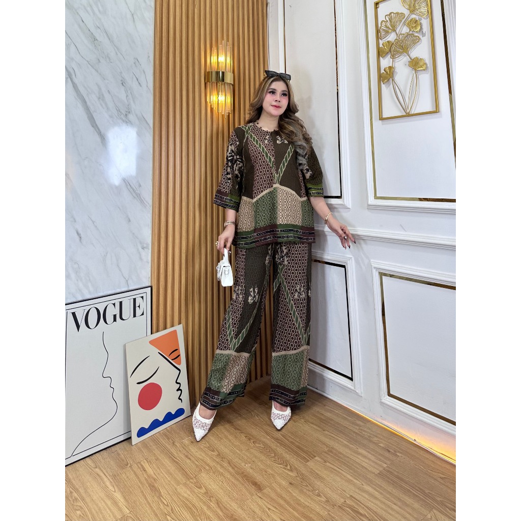 DAILY OOTD ONE SET KULOT MOTIF REVITA SETELAN LENGAN PENDEK RAYON PREMIUM KEKINIAN DISKON