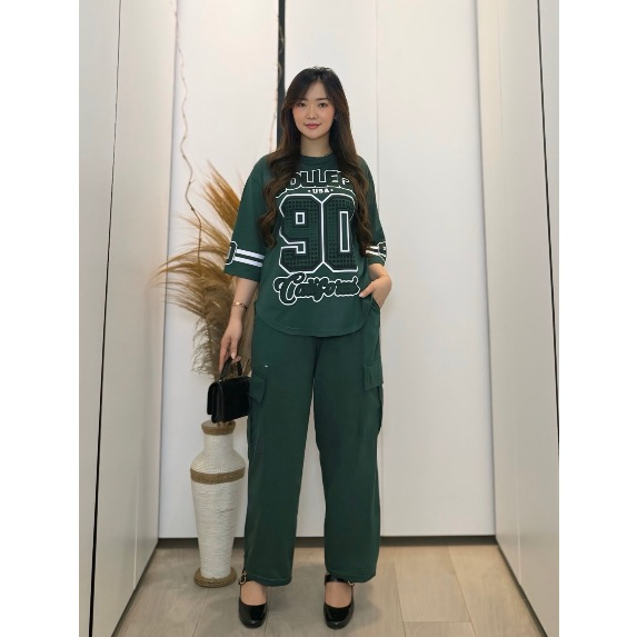 Setelan Cargo Oversize LD 120 CM Setelan Wanita Atasan Lengan 3/4 dan Celana Cargo Setelan New Fashion Muslim SR6118
