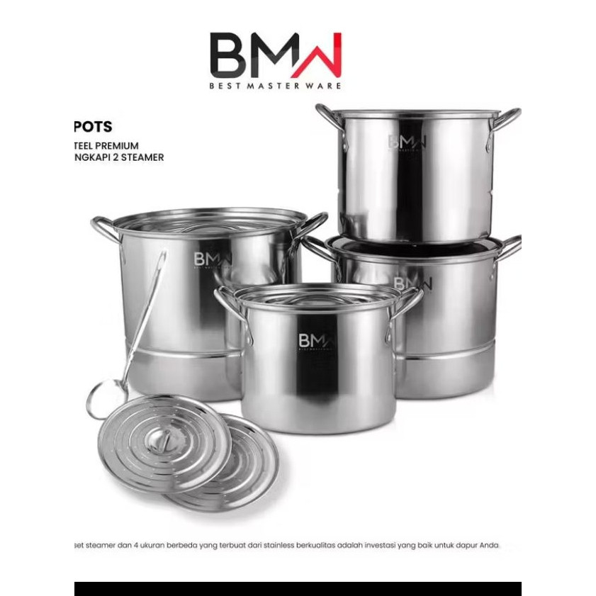 BMW Original Pot Steamer 4 Set/ Panci Kukus 4 Set/Panci Dandang Stainless Steel/Stock Pot Steamer Stainless